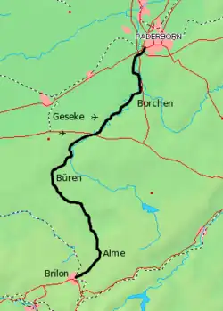 - ^ a b c d "Line 2961: Paderborn - Brilon Wald". NRW Rail Archive (in German). André Joost. Retrieved 17 November 2013.