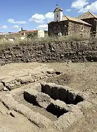The former settlement of Sisapo has been identified as the La Bienvenida archaeological site, which is located near the hamlet of the same name.[7] The foundation mark has been pushed back to the late-8th to early-7th centuries BC.[7] There is doubt on whether Sisapo was an Oretani city, although Plinius presented it as a Turduli city.[8] Sisapo thrived during the Roman era on the basis of the exploitation of cinnabar, a mercury ore.[9] The mines decreased in activity by the late-2nd to early-3rd centuries AD.[10]