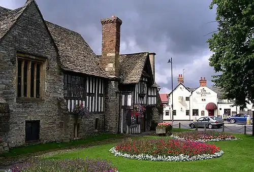 The almonry at Evesham was a separate building that was home to the almoner of the Benedictine Abbey of St. Mary and St. Ecgwine.[5]