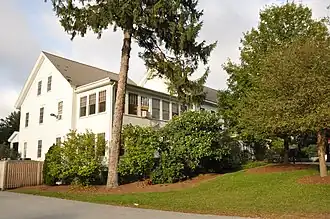 The former Stoneham Almshouse is located in eastern Stoneham, near the town line with Wakefield on the north side of Elm Street. It is a 2+1⁄2-story wood-frame structure, with a gabled roof, clapboarded exterior, and granite foundation. It basically a functional vernacular structure, with minimal Greek Revival styling found in the main entrance surround. The interior follows a relatively retardaire (out-of-date for the period) central hall plan. The original building has been encrusted with additions to the sides and rear.[2]
