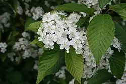 Alniaria alnifolia (syns. Sorbus alnifolia and Aria alnifolia), also called alder-leafed whitebeam, Korean whitebeam, or Korean mountain ash,[2][3] Korean: 팥배나무; RR: Patbaenamu; MR: p'atpaenamu; lit. 'red bean pear tree' Chinese: 水榆花楸; pinyin: shui yu hua qiu; lit. 'water elm rowan', is a species of whitebeam native to eastern Asia in eastern and northern China, Taiwan, Korea and Japan.[4]