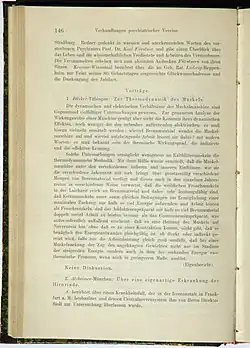 - ^ Alzheimer, A. (1 December 1911). "über eigenartige Krankheitsfälle des späteren Alters". Zeitschrift für die gesamte Neurologie und Psychiatrie (in German). 4 (1): 356–385. doi:10.1007/BF02866241. ISSN 0303-4194.