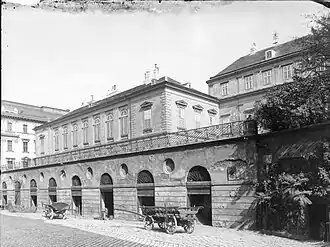 In 1803, he was hired as an architect by his father's former employer, Ferdinand Karl, and his wife, Maria Beatrice d'Este, Duchess of Massa, who were then residing in Vienna. From 1812, he was largely active in Hungary. His major project there came from János Graf von Keglevich de Buzin (1786–1856), for whom he worked on the Kistapolcsány Castle in Topoľčianky from 1818 to 1825.[3] In Vienna, he created the Palais Modena (1811–1814) and the original building for the Erste österreichische Spar-Casse (1834–1835, now part of the Erste Group), as well as working on the new headquarters for the Niederösterreichischen Landhauses (1837–1839).