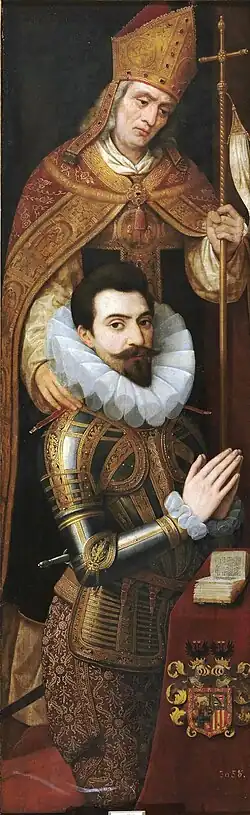 Beginning in 1586, Alonso fought under Alessandro Farnese against the Dutch Revolt. He was one of hundreds of young Spanish noblemen who flocked to Flanders in hopes of participating in an invasion of England.[3] He at one point rejected a promotion to captain of cavalry, preferring to remain a captain of harquebusiers. In 1588, he was with the disastrous Invincible Armada. Later that year, he was wounded at the siege of Bergen op Zoom. In 1590, he was named to the Consejo de Guerra. Sometime later, he was also named as secretary of state.[2]