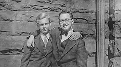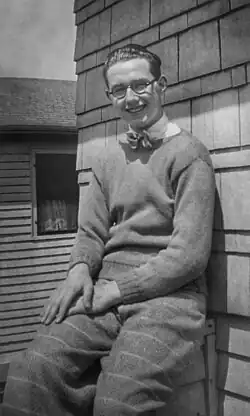 Alonzo James "Lon" Hanagan was born in 1911 in Lexington, Massachusetts, the oldest child and only son of Frank and Lizzie Hanagan's three children. He had two younger sisters, Marry and Betty. The Hannagans were a religious family and although very close, it was a strict family environment. The family had a piano and Lon played on it, imitating an organist at the church, which the family attended every Sunday. He started to work as a teen boy, with his first job delivering fish from a local seller. In addition to playing music, he wrote and published some songs himself as a teenager. His first published composition was "A Bunch of Good Fellows Are We", written for a musical, performed by "Good Fellows" group. He started to play piano and organ on a weekly radio program in Lexington at the age of sixteen. He also performed in local churches and events. He moved with his family in 1928 to Lockport, New York, when his father was transferred to the Jefferson Union Plant. Lon graduated from high school in Lockport in 1929.[2] In Lockport he worked as an organist at movie theaters. He befriended a local boy, Ralph Ehmke, who became his first boyfriend.[3] Lon developed an interest in photography as a teenager, with his parents buying him a Kodak Box camera. He learned darkroom skills in a Boy Scout camp in New Hampshire. His early photographs were images of his family, friends, and endless snapshots of Ralph Ehmke. In camp he also made his first series of male nudes, photographing one of his adult camp counselors fresh from the shower.[4]