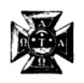 Alpha Tau Omega (ΑΤΩ), commonly known as ATO, is an American social fraternity founded at the Virginia Military Institute in 1865 by Otis Allan Glazebrook. The fraternity has around 250 active and inactive chapters and colonies in the United States and has initiated more than 229,000 members.[1] VMI Cadets are no longer associated with the fraternity. In 1885, the VMI Board of Visitors ruled that cadets could no longer join fraternities based on the belief that allegiance to a fraternal group undermined the cohesiveness of and loyalty to the Corps of Cadets.[2]