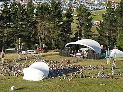 It was run as a limited liability company co-owned by Pacific Island Entertainment Ltd. and Middle Earth Productions Ltd.,[1] until two of the Directors of the company and the festival were implicated in a drug bust in 2003.[2][3] Following the bust, the party was taken over by New Zealand Entertainment Service Ltd. and rebranded 'Alpine'.[4][5] It carried on under the new name, eventually being superseded by Rhythm and Alps, which was created by the organisers of the Rhythm and Vines New Year festival in the North Island.