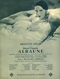 Alraune is a German science fiction horror film directed by Richard Oswald.[1] Like the 1928 version, this movie again features Brigitte Helm in the role of Alraune. This version aimed for greater realism but is still based upon the original German myth.