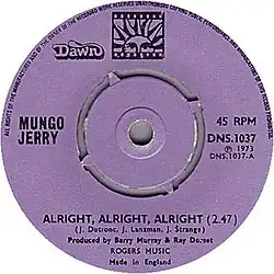 - ^ "Mungo Jerry– Alright, Alright, Alright". Discogs.com. Retrieved 10 January 2013.