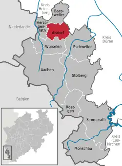 Location of Alsdorf within Aachen district
