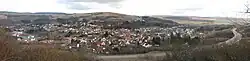In the centre of the village is the Renaissance village hall (Rathaus), built in 1578. The building consists of a bricked lower storey with round arches and timber-framed upper storey.