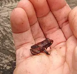 However, the placement of Limnomedusa is highly uncertain, and it might belong to the family Cycloramphidae.[1] In contrast, Alsodes+Eupsophus group (sensu stricto, after moving some species formerly included in the latter genus to other genera) forms a well-supported, monophyletic group. These genera are Patagonian endemics and represent the largest part of the amphibian diversity in that area. Eupsophus species are restricted to forested areas at southern latitudes, but some species of Alsodes reach the arid Andean slopes in central Chile and Argentina.[5]