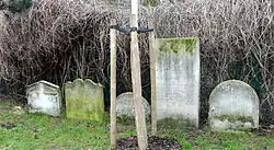 St Mary's was badly damaged by enemy action in 1940, during The Blitz,[3] and subsequently demolished. Little remains of the old church, other than the floor plan and some graves. Those buried in former churchyard include Richard Parker, Richard Brandon, Sir John Cass, and "Sir" Jeffrey Dunstan, "Mayor of Garratt".