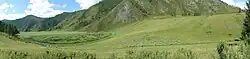 Towards the end of the last glacial period, 12,000 to 15,000 years ago, glaciers descending from the Altai mountains dammed the Chuya River, a large tributary of the Katun River, creating a large glacial lake including the Chuya and the Kurai basins.[4][5] As the lake grew larger and deeper, the ice dam eventually failed, causing a catastrophic flood that spilled along the Katun River. Its magnitude has been estimated to be similar to that of the Missoula flood in North America.