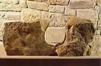 The anteroom contained a bovine shoulder blade, lying on its earthen floor. The tomb chamber proper also had a simple earthen floor, but here and there it had been covered with limestone slabs. Such pavings occurred especially near the back and underneath groups of burials. Occasionally, slabs set on edge delimited small areas, one such partition contained 5 skulls of children. The dead had been placed in the tomb over time, possibly over several centuries. There were up to 4 burial layers, separated by layers of soil, stones, charcoal and rotten wood, perhaps the remains of intermediate coverings or floors. More recent depositions often damaged, moved or truncated earlier ones. There were fully articulated skeletons, fragmentary ones, piles of skulls (near the walls) and caches of other sorted bones, indicating some reorganisation of the remains after decay of their flesh had taken place. It appears that at that point, bones were often sorted according to type. Skulls were frequently stacked as piles or pyramids. 30 skulls were sitting in a row along the left wall. Intriguingly, of 8 articulated skeletons, only 2 retained the skull. As far as determinable, all bodies were placed parallel to the tomb, with their head towards the east.[9] Some of the skeletons were associated with gravegoods. For example, an elderly man was accompanied by 5 fox jawbones, an arrowhead, a fossilised seashell, and several pierced dog teeth. A woman of over 40 years' age was found with a fox jaw, 20 pierced dog teeth and some cremated children's bones. The presence of burnt human remains is unusual in Wartberg culture tombs, with the exception of the tomb at Lohra.[10]