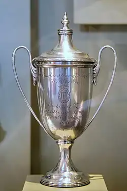 Gibson's five Wimbledon trophies are displayed at the Smithsonian Institution's National Museum of American History.[109] The Althea Gibson Cup seniors tournament is held annually in Croatia, under the auspices of the International Tennis Federation (ITF).[110] The Althea Gibson Foundation identifies and supports gifted golf and tennis players who live in urban environments.[111] In 2005 Gibson's friend Bill Cosby endowed the Althea Gibson Scholarship at her alma mater, Florida A&M University.[112]