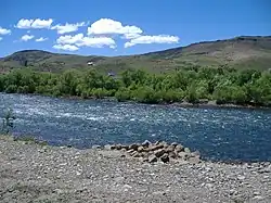 The landscape around Aluminé is mountainous with clear water lakes and creeks. The prevailing vegetation includes Araucaria araucanas, coihue and mallín.[6] Mammal species such as mountain lions, pudú and South Andean deer inhabit the area. The bird species include the Andean Condor, black-necked swan and Darwin's rhea.[7] A variety of trouts, such as rainbow trout and brown trout, along with perches and other species, are common in the bodies of water.[8]