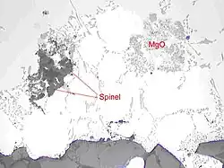 In aluminium alloys containing magnesium, magnesium oxides (MgO), cuboids (MgAl2O4-cuboid) and metallurgical spinel (MgAl2O4-spinel) can form. They result from the reaction between magnesium and oxygen in the melt. More of them will form with time and temperature.