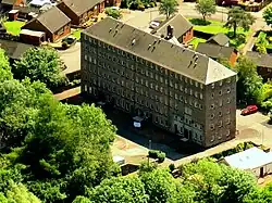 The old town centred on Alva House, a tower house dating from 1542 and enlarged and remodelled in 1636 by Sir Charles Erskine. It remained in the Erskine family until sometime after 1802 when it passed to the mill owner James Johnstone.[4][5] House was requisitioned by the government during the Second World War and was used for target practice by local artillery battalions.[6]
