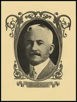 Alvah Leigh Powell was born to Madison S. Powell and Sarah Ann Cummings in Vicksburg, MS. He first married Ada B. Cook in 1882 in Lake Village, AR and they had six children: Ernest Allen (1883-1939), Virginia (1889-1954), Evans Alvah (1891-1954), Sarah Anne (1895-1956), Lillian Ada (1898-1963), and Helen J. (1900-1988). Powell and his family moved frequently across the mid-Southern US, with all the children except two being born in different locations in different states.[2] Some sources indicate that Powell was a minister during these years,[3] accounting for the frequent moves, however they are secondary sources and no primary source has been cited. Powell divorced Ada in 1903 and remarried to Bertha M. Flowers in 1905. There were no children from the second marriage.