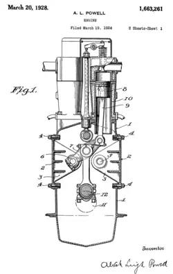 Between 1919 and 1924 Powell is known to have filed 32 patent applications for a variety of improvements on internal combustion engines, transmissions, and other engine peripherals. Records indicate that he received 29 patents in this time period.[4] The last of the granted patents was for the Powell Lever Motor. However, Powell earlier described the theory of the Powell Lever Motor in his book Powell Leverage Cycle, published in 1922.