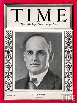 Macauley served as president of the American Automobile Manufacturers Association and the National Automobile Chamber of Commerce. He appeared on the cover of Time magazine in 1929 after testifying before the Senate Finance Committee's subcommittee at the behest of Pennsylvania Senator David A. Reed.[2] Time magazine's biography of Macualey noted that he was an avid golfer and woodworker, and an excellent marksman.[2]