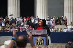 King spoke at Glenn Beck's Restoring Honor rally at the Lincoln Memorial in August 2010.[32][33] ABC News reported that in King's speech, she hoped that "white privilege will become human privilege and that America will soon repent of the sin of racism and return itself to honor."[30]