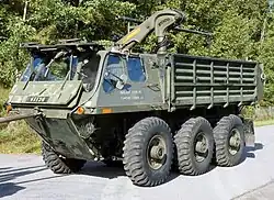 All MK 1 had the chassis prefix STAL, and ran from STAL 16 to STALL 140.[15] Stalwart Mk 1 load carrier. This had a driver's and passenger's seat. The Mk 1 was used for troop movement in Aden, but the Stalwart was more regularly used for carrying packed fuel, over 300 Jerry cans, or ammunition as alternatives to the five tonnes of cargo in the UK and Germany. The majority of the Mk 1 models did not have winches fitted. Sweden mounted hydraulic winches onto the front of their MK 1 Stalwarts, known as Amfibiebil 101B. Sweden also mounted FOCO 4000 ZXX cranes on some of their vehicles, which are mounted to the left side of the cargo bay.
