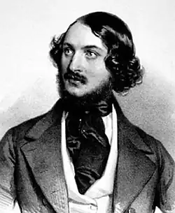 As far as the libretto went, it was acceptable to Verdi; he was even "highly delighted" with it.[2] However, from Voltaire's play the "intellectual content [was] reduced to a minimum [and] religion and politics, the two raisons d'être of the drama, are scarcely mentioned; and the confrontation of different creeds, different civilizations and different worlds becomes merely another variant of the eternal triangle.[2] In the Spring of 1845 Verdi's health forced a postponement until at least the following August, although he was well enough to arrive in Naples by the end of July to oversee rehearsals. In a letter of 30 July, he expresses optimism that the opera will be well received but notes that "if it were to fail, that wouldn't upset me unduly".[5]
