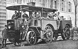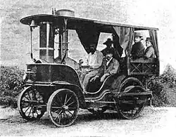 Amédée père manufactured his first steam vehicle L'Obéissante (The Obedient) in 1873 and made the first road trip between Paris and Le Mans in 18 hours. The L'Obéissante carried 12 passengers and had a cruising speed of 30 km/h (19 mph) and a top speed of 40 km/h (25 mph). It was driven by two V twin steam engines, one for each rear wheel. Front wheels were cushioned on the sliding pillar suspension which became the first ever independent front suspension.[3] The original vehicle is preserved in the collection of the Conservatoire National des Arts et Métiers in Paris.[4]