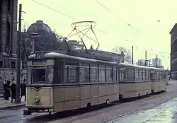 Am Kupfergraben has been used by trams since the 1930s, initially only as the terminus of line 75. Since 1997, tram lines M1 and 12 have been running on the street between Dorotheenstraße and Georgenstraße.