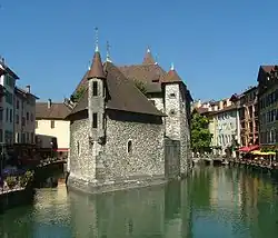 In May 1358 the Emperor exempted Amadeus III of the jurisdiction of Savoy and granted him the right to appeal to the Emperor all decisions by any other court, whether French or Savoyard. Amadeus, but not his successors, was granted the right to coin money (at the Palais de l'Isle), legitimise bastards, and create notaries.[17] The bishop of Geneva immediately opposed the count's right of coinage to the pope. Amadeus of Savoy ordered Amadeus III to renew his oath of homage, but the latter instead asked for the arbitration of Jean de Bertrand, the Archbishop of Tarentaise.[17] On 2 August the archbishop ruled that Amadeus had the right to mint coins, but not to refuse to renew the oath of homage nor to appeal outside of the courts of the count of Savoy. The count of Geneva refused to accept the result, accusing the archbishop of an "unjust and iniquitous" verdict and vowing to appeal to the Emperor personally (viva voce).[17] The two counts came to terms by 21 December. Amadeus III agreed to render homage at Geneva for his fiefs Duingt, Annecy, La Roche, Clermont, Thônes, Gruffy, Arlod, Châtel, La Bâtie, and Gaillard, and for the "sub-fiefs" of his own vassals Thomas de Menthon, Guillaume de Compey, and Aymon de Pontverre.[17] In return Amadeus VI declared the archiepiscopal decision void.