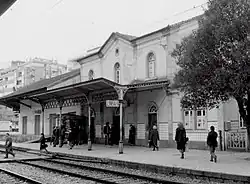 Amadora Station opened on 16 April 1888, originally under the name of Porcalhota. It was renamed Amadora on 1 February 1908.[3] The station building was rebuilt as a part of a modernization project of the Sintra Line and put into service on 15 May 1993. The quadrupling of the Sintra Line tracks between Benfica and Amadora was completed in September 1999.[4]
