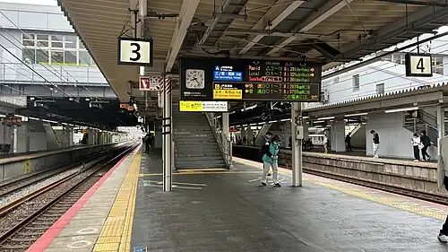 1. ^ "移動等円滑化取組報告書(鉄道駅)" (PDF) (in Japanese). JR West. 2024. Retrieved 12 March 2025.