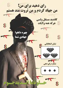 In 2010, Mojadidi invented a character called the "Jihadi Gangster" as a satire of what he saw as jihad's "Street cred" (credibility) in modern Afghan culture, which he connected to the American concept of "bling."[6] In a series of photos and posters, Mojadidi dressed up as this character, whose appearance was a combination of American hip-hop gangster and Afghan mujahideen.[5] During the Afghan parliamentary election, 2010, Jihadi Gangster appeared in posters around Kabul wearing a black turban and a large gold chain with a gold-plated gun around his neck (see photos). His campaign slogan read, "Vote for me, I've done jihad, and I'm rich."[5][7]