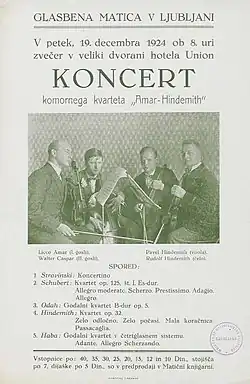 The Amar Quartet, also known as the Amar-Hindemith Quartet, was a musical ensemble founded by the composer Paul Hindemith in 1921 in Germany. The quartet was active in both classical and modern repertoire until disbanding in 1933. It performed for many European concerts, broadcasts and recordings.