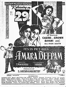 Amara Deepam (transl. The Eternal Lamp) is a 1956 Indian Tamil-language romantic drama film directed and co-written by T. Prakash Rao. A remake of the 1942 American film Random Harvest, it stars Sivaji Ganesan, Savitri and Padmini. The film, produced by Venus Pictures, was released on 29 June 1956. It was remade in Hindi as Amardeep (1958).[2][3]
