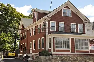 The Amasa Farrier Boardinghouse is a historic house at 280 Main Street in Stoneham, Massachusetts. The large wood-frame house was built c. 1865 by Amasa Farrier, the town surveyor. The building served as a boarding house for workers in Stoneham's shoe factories, and is the only boarding house of the period to survive in the town. It is a 2+1⁄2-story wood-frame structure with modest Italianate styling, including bracketed eaves and gable, and broad corner boards. A period porch with bracketed turned posts[2] has been replaced by an enclosed porch.