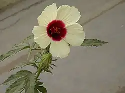 The plant is hermaphroditic. It produces large, cream-coloured flowers characterised by a reddish purple or scarlet throat. These flowers are short-lived, opening in the early hours of morning before sunrise and closing by noon of the same day. While cannabinus is generally self-pollinating, bees and other insects cause a small amount of cross-pollination. In India the plant is cultivated in the states of Andhra Pradesh, West Bengal, Bihar, Maharashtra, Karnataka, and Orissa.