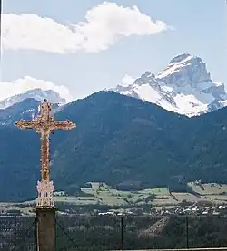 A little further down is a small 19th-century church. In the forecourt is a view of the Dévoluy and Lake Sautet (the Souloise side) dominated by the Obiou.
