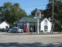 Located at the intersection of U.S. Route 66 and Illinois Route 17 in Dwight, Illinois, United States, Ambler's Texaco Station was built in 1933 by Jack Schore on property originally owned by Otto Strufe.[2][3] The gas station is no longer in operation as a filling station, but when it closed, it held the record as the longest operating gas station along the historic Route 66. The station last dispensed gasoline in 1999.[2][4] In 1936, the station was leased to Vernon Von Qualen and became known as Vernon's Texaco Station. Over the next two years, Von Qualen purchased the station from Schore, and sold it in 1938 to Basil "Tubby" Ambler. Ambler owned the station from 1938 to 1966.[3] Ambler's ownership was the longest of any owner during the most historically significant period; as a result, the station was known as Ambler's longer than by any other name.[3]