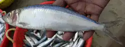 The fish feeds on minute organisms like copepods, Mysis and zooplankton. Widely used as bait in the tuna fishery all along the world, both as a live or dead forms.[2]