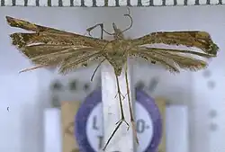 7. ^ Cees Gielis (1993). "Generic revision of the superfamily Pterophoroidea (Lepidoptera)". Zoologische Verhandelingen. 290 (1): 76. ISSN 0024-1652. Wikidata Q93258703.