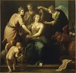 Also of note are several decorations for what is now known as the Hall of Louis XIII. These were scenes from the Aethiopica (also known as Theagenes and Chariclea) by Heliodorus. He also created portraits. The one of Queen Marie is perhaps the best known.[1]