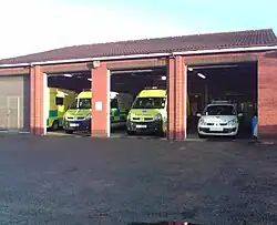 Ambulance stations have facilities for maintaining ambulance vehicles, such as a charger for the vehicles' batteries.[1] They have space for storing and maintaining medical equipment, and sometimes a fuel pump. There will also be facilities for the crews, including a kitchen and showers. It varies as to whether crews routinely wait at the station itself for call-outs (as full-time firefighters do). If they do, then the station usually have an alerting system. Larger stations may have a manager's office or training rooms.