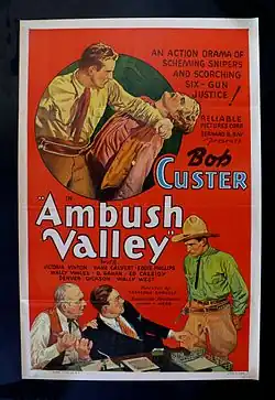 Ambush Valley is a 1936 American Western directed by Bernard B. Ray and starring Bob Custer and Victoria Vinton. It was produced by Ray and Harry S. Webb for Reliable Pictures.