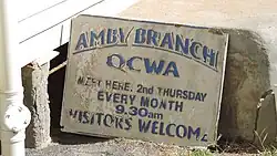 The Amby branch of the Queensland Country Women's Association meets in the Booringa Shire Hall.[21]
