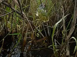 Viable A. gracile egg mass suspended above water as water level dropped.
