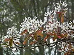 Amelanchier × grandiflora, the serviceberry, is a small deciduous flowering tree or large shrub, a hybrid of garden origin between A. arborea and A. laevis, in the family Rosaceae. It produces white flowers and small red to purple edible fruits.[1]