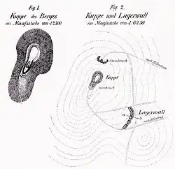 The Amelungsburg is believed to be the observation hill (Warthberg) belonging to the Piepenkopf rampart system located on its south-southwestern spur.[1] Investigations into the charred remains (Brandfunde) at the site of the settlement with its double-embankment have been dated to 250 B.C. and can thus be presumed to have belonged to the La Tène culture. The settlement was not rebuilt.